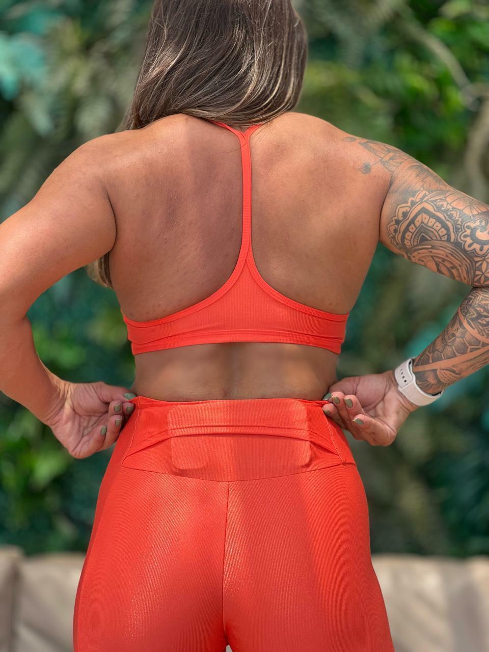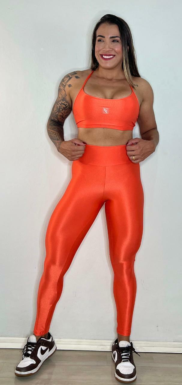Conheça o Conjunto Helena com Calça Case na Cor Tangerina! O Conjunto Helena é a escolha ideal para quem busca elegância e funcionalidade em suas atividades físicas.